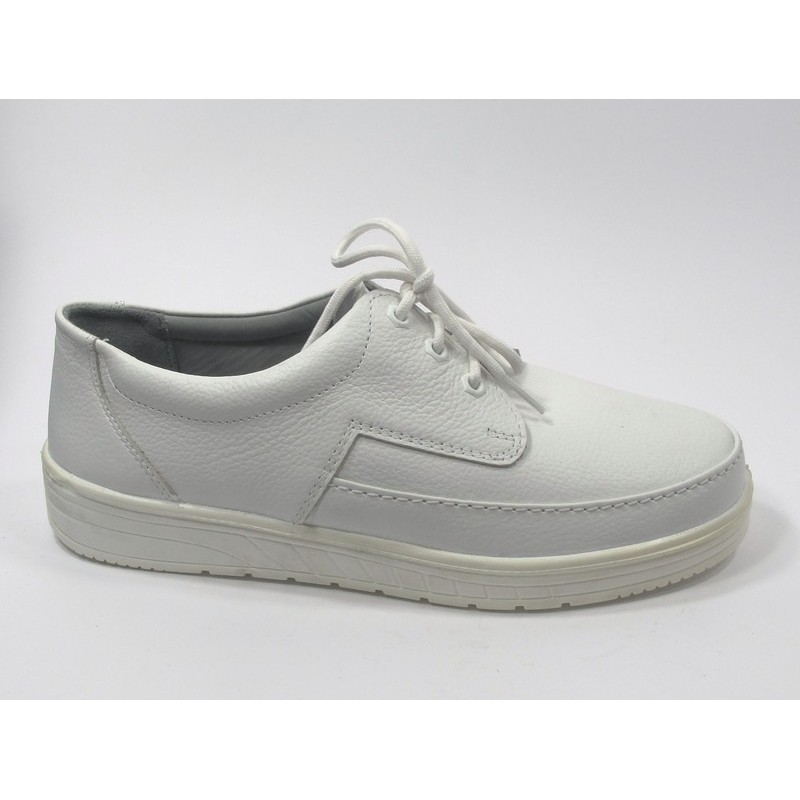 La chaussure de travail en cuir grainé blanc à lacets est idéale pour les métiers de l'hôtellerie et du service. Cette chaussure montre que l'on peut allier sécurité, style et confort. De grande qualité, cette chaussure de sécurité répond aux normes CE, EN ISO 20347:2012 O2, SRA. Sa doublure en microfibre est respirante et absorbante, vous assurant confort et hygiène. La mousse PU de la semelle permet une élasticité permanente de la semelle et assure la grande légèreté de la chaussure. Avec cette semelle, la chaussure est amortissante, résiste au carburant, antidérapante et antistatique. Le cuir étant traité, la chaussure de travail résiste dans le temps et est facile d'entretien. La première est échangeable. Cette chaussure de travail tient bien au pied et vous permettra de travailler dans les meilleures conditions. Souple, légère et confortable, ce produit est idéal pour vous !