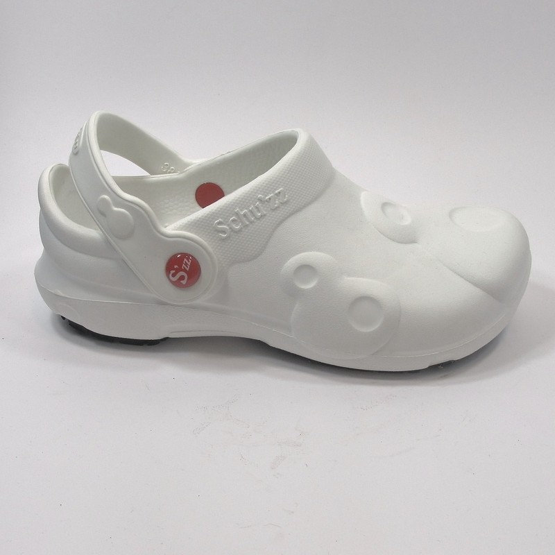 Sans latex, les chaussures médicales Schuzz d’une légèreté sans égal (90g par chaussure) sont monoblocs et anatomiques. Elles disposent d'une plante à micropointes de massage pour stimuler la circulation sanguine.