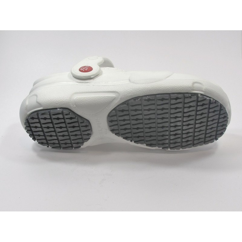Cette chaussure sabot pour infirmière et aide-soignante a été conçue pour répondre aux conditions de travail dans le paramédical avec sa résistance au glissement sur des carreaux céramiques recouverts d'une solution de Sodium Lauryl Sulfate, conforme à la norme EN ISO 20347 niveau SRA. Elle est donc idéale que ce soit sur sol sec, gras, humide, mouillé ou graisseux que l'on peut retrouver également en industries agroalimentaires, dans les hôpitaux, en restauration collective, etc. Ce sabot dispose de caractéristiques ergonomiques particulières conformes à la norme EN ISO 20347. Il est solide et confortable. Sa semelle est hautement antidérapante (SRC). Ce sabot pour aide-soignante et infirmière est facile d'entretien. En effet, il se lave à 40°C en machine. Il présente une hauteur de tige et de la partie arrière conforme à la norme EN ISO 20347. L'épaisseur de la semelle est sans crampon et assure une résistance à l'abrasion et une résistance à la flexion de la semelle de marche conforme à la norme EN ISO 20347. Ce sabot pour infirmières, aide-soignantes ou autres professionnels est un basique et vous assurera confort, sécurité et légèreté !
