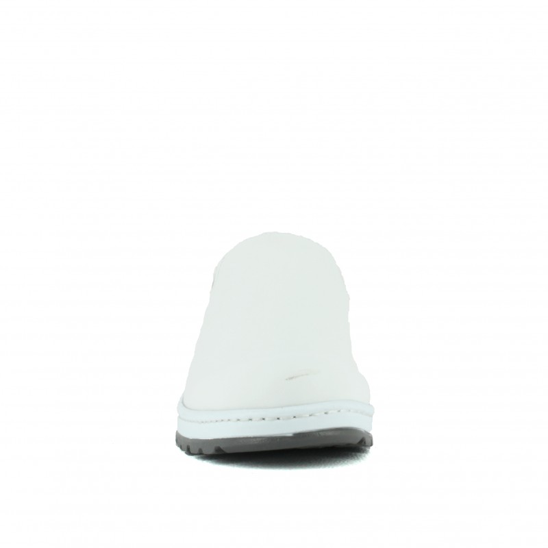Chaussure pour personnel médical femme ou homme de couleur blanche. Elegante et confortable, cette chaussure blanche pour le médical et le para-médical est un produit d'excellente qualité. Elle propose une semelle antidérapante avec un coefficient d'adhérence élevé sur sol sec et humide. Vous aurez une stabilité à toute épreuve. La semelle est équipée de stries composées de crampons pour une excellente adhérence sur les sols glissants (SRC) pour une évacuation optimale des liquides. Cette chaussure répond aux normes EN ISO 20347, SRC, 01, F0. La tige est en microfibre lavable à froid et à chaud. Attention ne pas dépasser le lavage à 40 °. Cette chaussure pour personnel hospitalier est très élégante avec une jolie forme droite à pointe arrondie. Le contrefort au niveau du talon assure un excellent maintien du pied. La semelle de propreté est rembourrée avec un très beau tissu en mousse très confortable avec traitement anti-bactérien et charbon actif. Assurant confort, stabilité et légèreté, cette chaussure vous protège des glissades et est idéale pour votre métier !